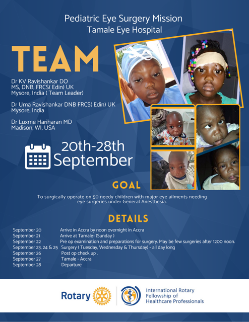 Northern community Eye Hospital, Tamale , Ghana Mission 11-14 March (BDI) Our board member (Rtn Dr K V Ravishankar) will be